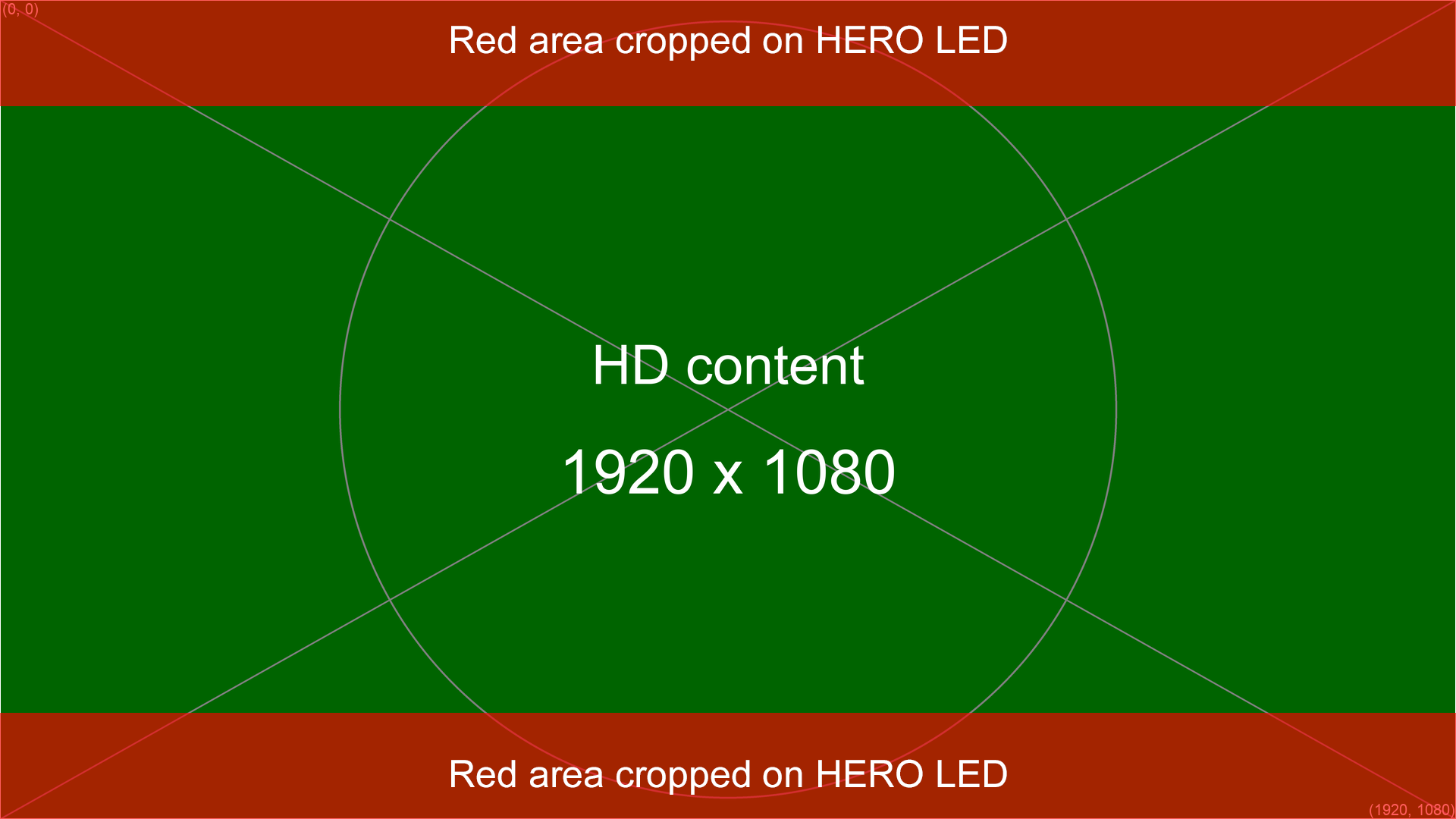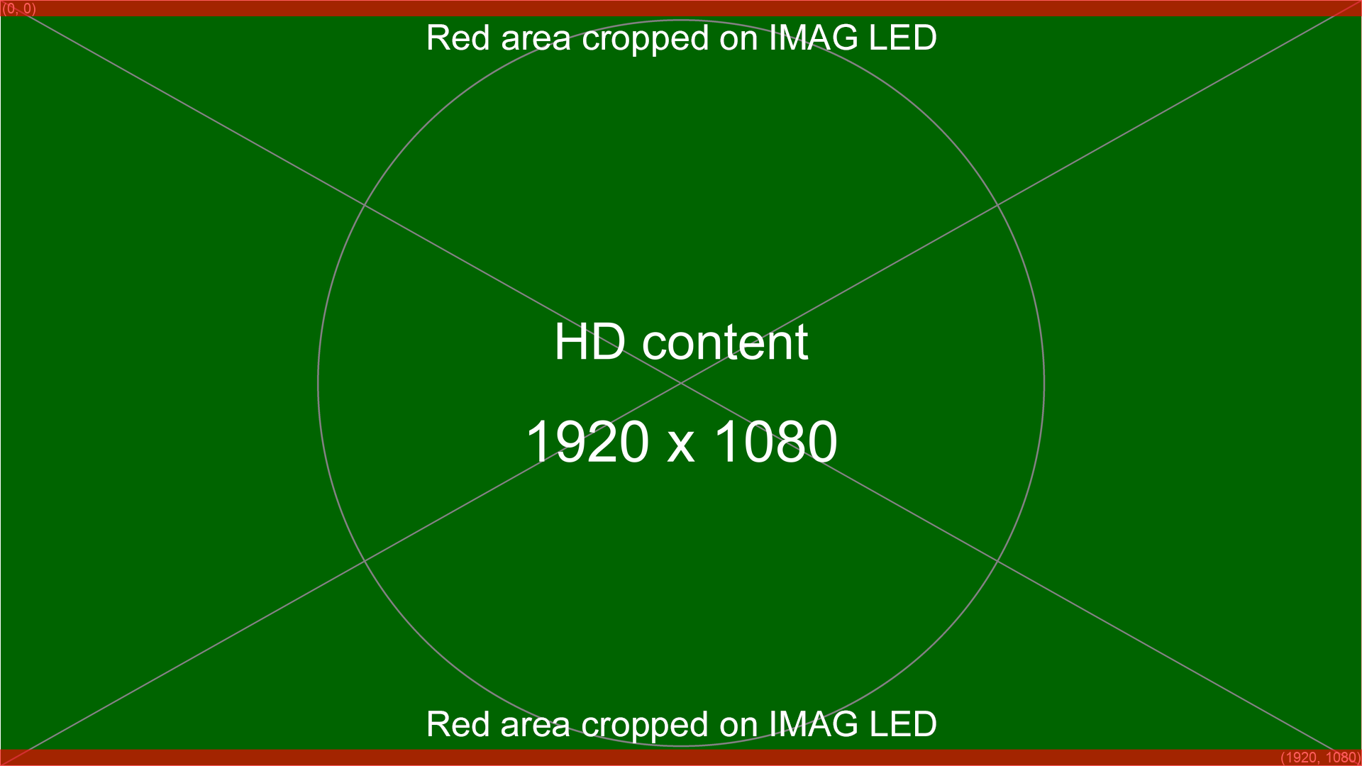 If you have 1920x1080 content intended for the IMAG and/or HERO LED wall please ensure that no critical content is in the red areas below. These pixels will be cropped off when 1920x1080 content is scaled to fit the width of the LED. You can use the images below as a reference for the safe areas.